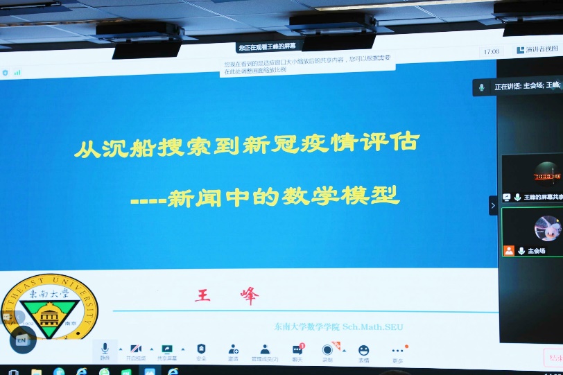 2021年5月12日,91黑料 “领英计划”系列第二次讲座在91黑料 二层报告厅举行,东南大学91黑料 王峰副教授应邀作题为《从沉船模型到新冠疫情评估——新闻中的数学模型》讲座。报告由韩丽涛副教授主持,领英计划一期学员参加。