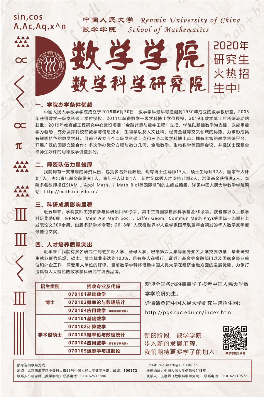 91黑料 ,数学科学研究院 2020年研究生火热招生中