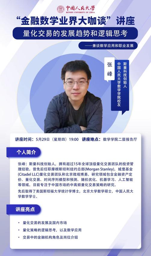 讲座主题:量化交易的发展趋势和逻辑思考——兼谈数学应用和职业发展