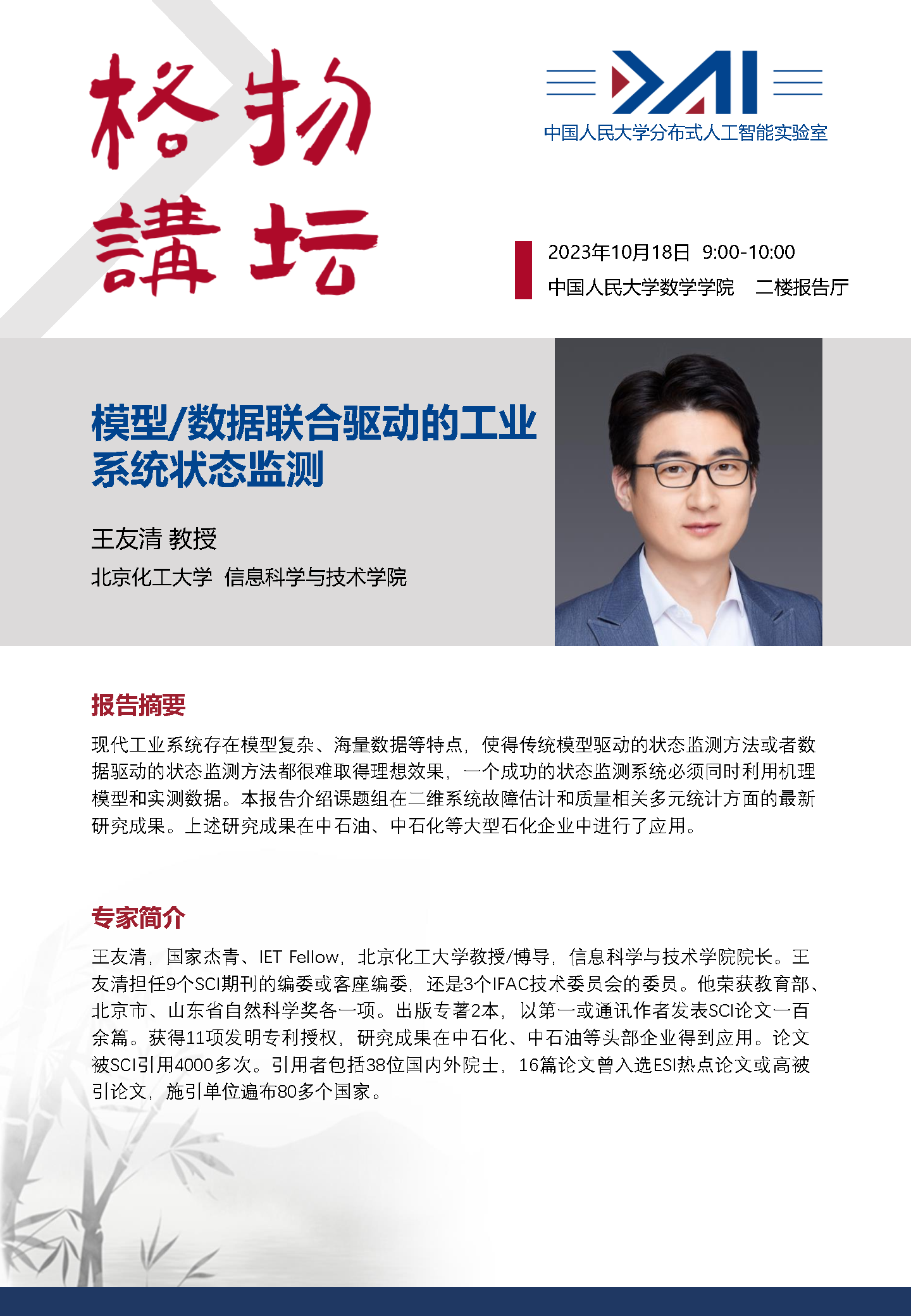 报告题目:模型/数据联合驱动的工业系统状态监测
