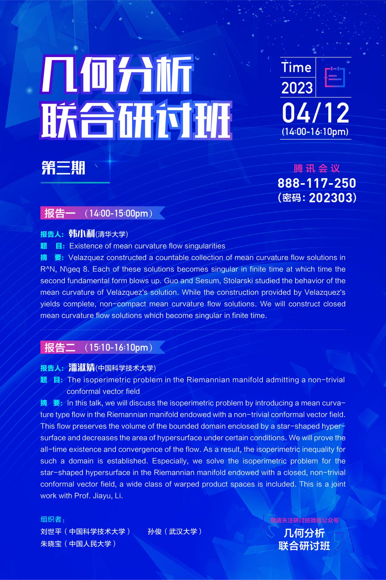 活动预告|几何分析联合研讨班