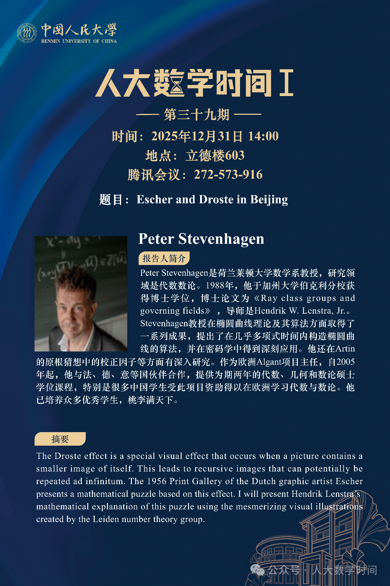 主讲专家:Peter Stevenhagen,荷兰莱顿大学数学系教授