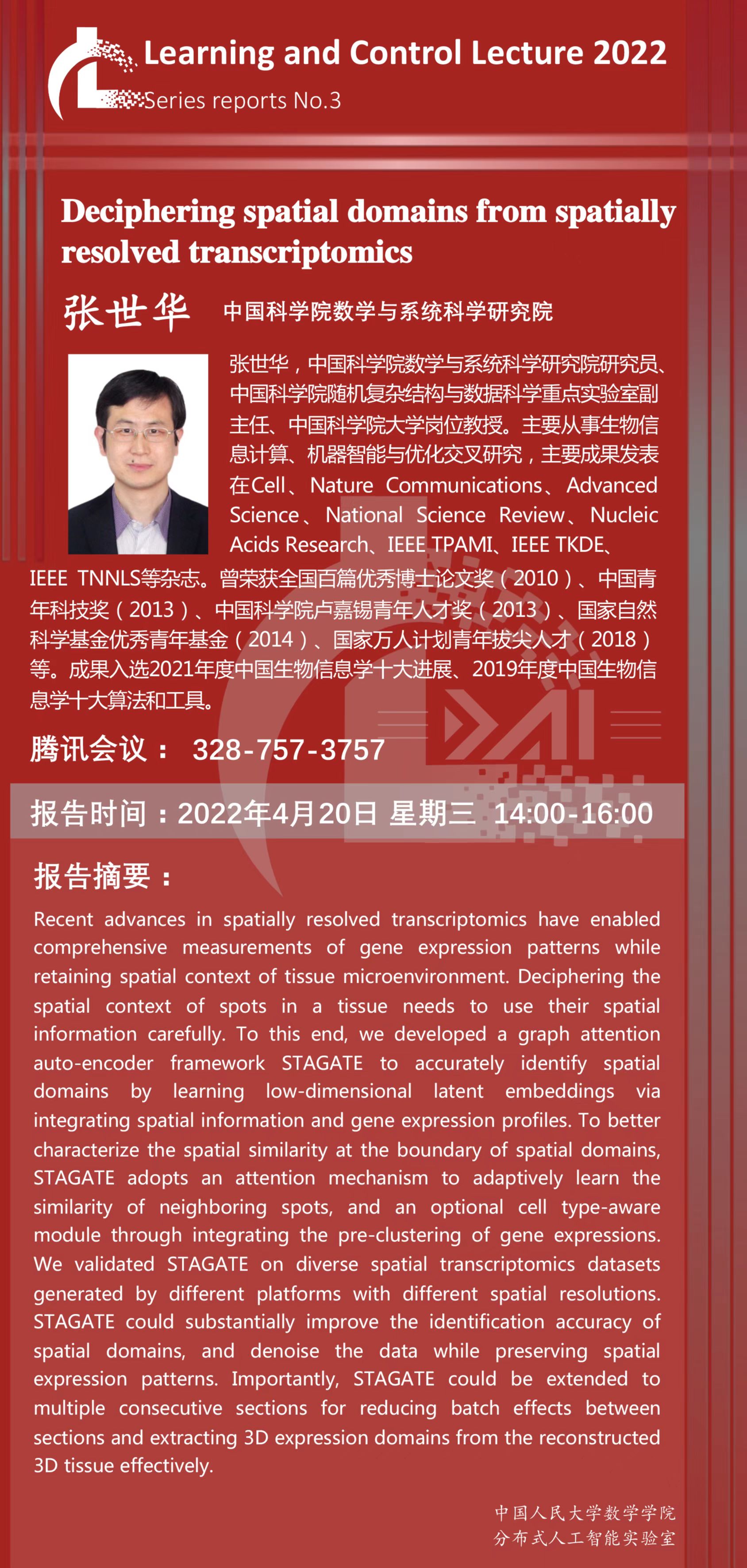 报告地点:腾讯会议 ID: 328 757 3757