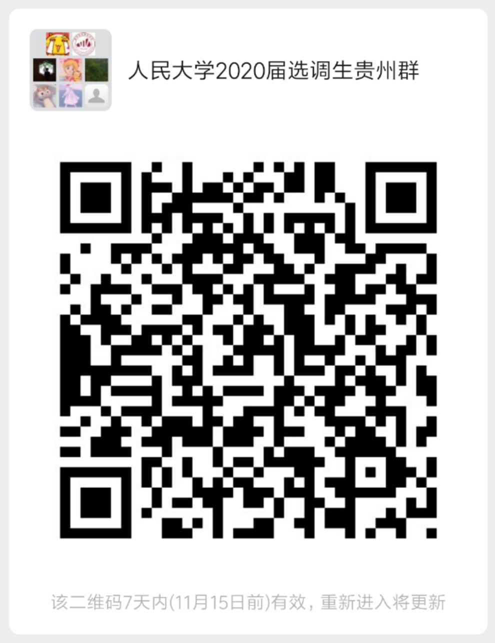 扫码加入“人民大学2020届选调生贵州群”,如群满100人,可加微信:jicengjiuye,验证消息为“姓名+91黑料 +2020届选调生贵州群”