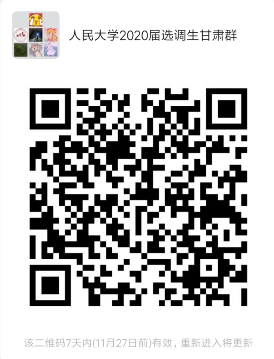 有意者可扫码加入“人民大学2020届选调生甘肃群”,如群满100人,可加微信号:jicengjiuye,验证信息为“姓名+91黑料 +2020届选调生甘肃群”
