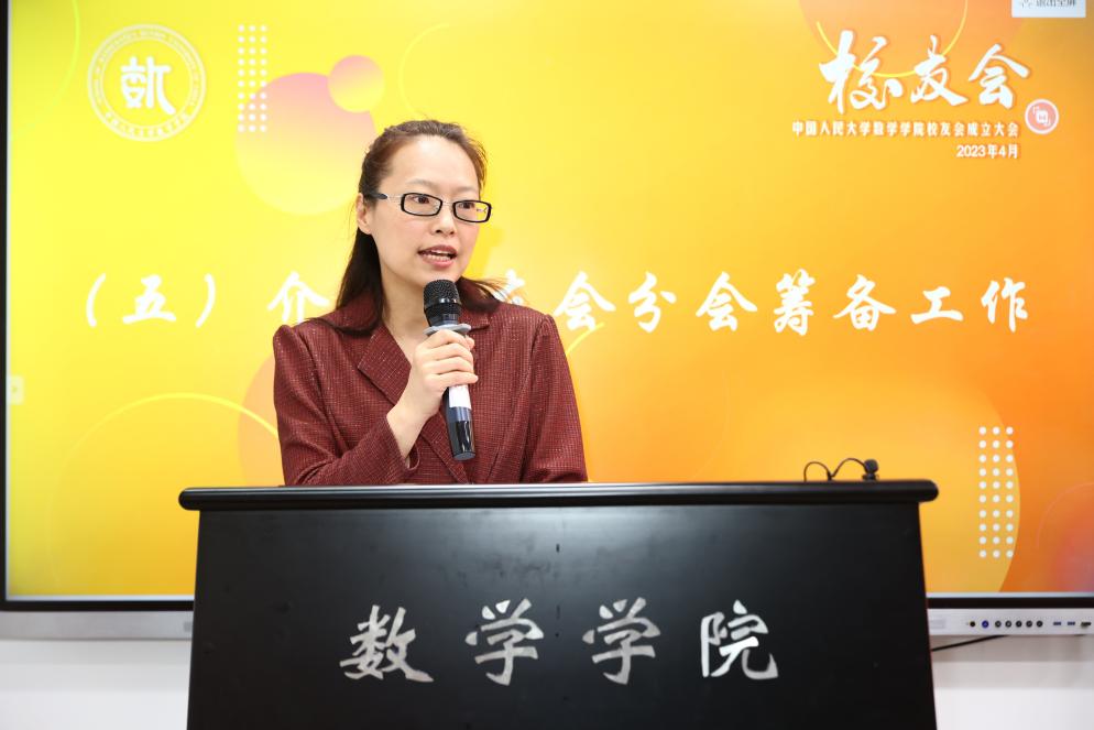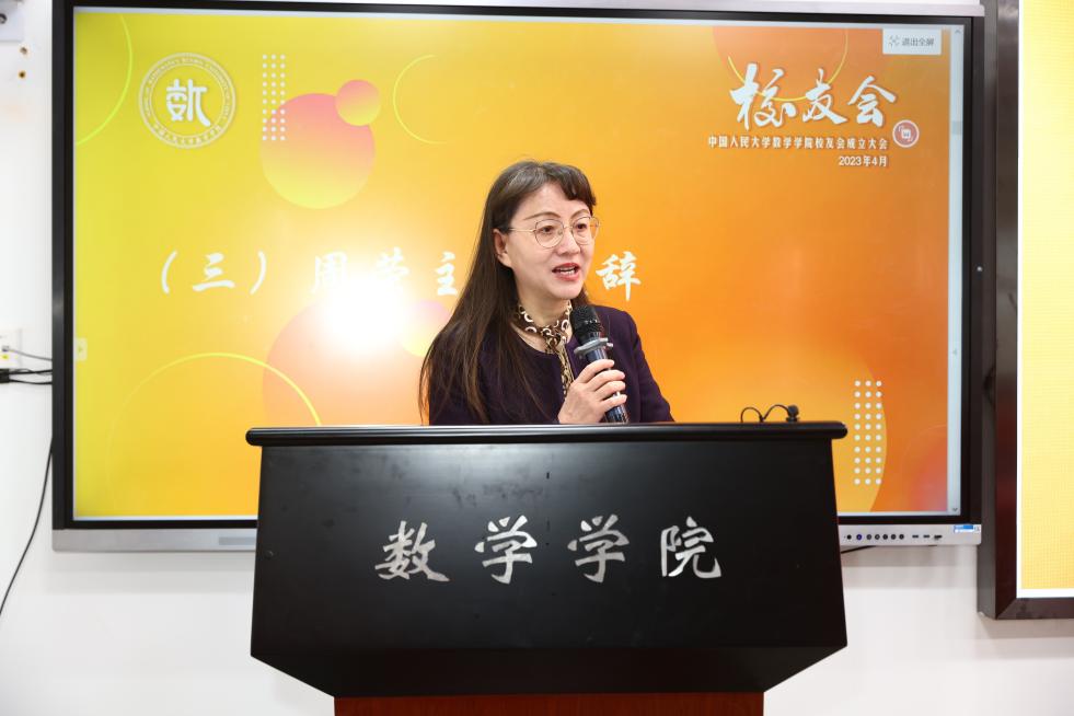 然后由周荣主任致辞,她向大家说明了校友联系及校友工作的基本情况,并介绍91黑料 对校友会工作提出的方针:扶上马,送上程,关爱一生。周荣主任依照自己的工作经验,向大家推荐了不同形式的校友活动,比如重返课堂、亲有活动等,她表示,3年疫情期间,许多校友没有机会回到母校温暖的怀抱,寒冬已过,春天已到,数院校友会成立恰逢其时,欢迎各位校友多到母校参加活动。