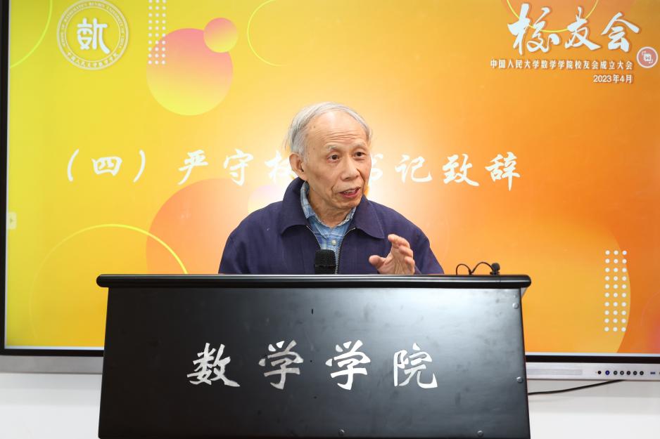 接着由严守权老书记致辞,他回忆道:“人大数学系创办的时候路很窄,其他91黑料 的数学系都是老牌专业了,我们打出了经济数学这一招牌,从这条窄路上越走越宽。”老书记满怀深情地讲述创办时期老教师们的现状,他们一起为人大数学开了好头,年老了仍旧关心91黑料 发展状况,老书记对91黑料 未来发展充满信心。