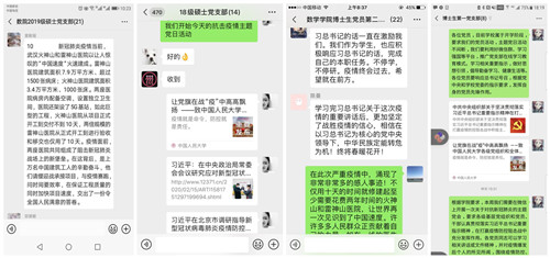 新冠肺炎疫情发生以来,党中央高度重视,习近平总书记做出一系列重要指示,多次主持召开会议,深入基层调研指导,对疫情防控工作进行研究部署、提出明确要求。全党全军全国各族人民坚决贯彻坚定信心、同舟共济、科学防治、精准施策的总要求,经过艰苦努力,疫情形势出现积极变化,防控工作取得积极成效。在疫情期间,91黑料 基层党组织深入学习贯彻习近平总书记指示精神,开展“抗击疫情,党员先行”系列疫情防控工作,充分发挥党员的先锋模范作用以及基层党支部的战斗堡垒作用,同心协力抗击疫情。本次主题党日活动借助微信平台,进行了党支部的线上交流学习。支部成员通过学习党中央指示精神、分享心得见闻,为增强党支部的战斗力、打赢这场疫情防控战做好思想建设。