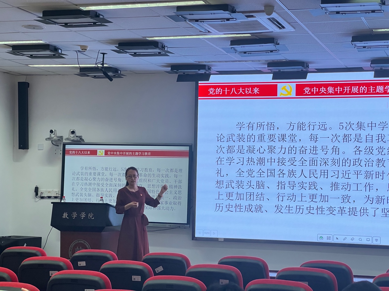 柯媛元从党的群众路线教育活动、“三严三实”专题教育、“两学一做”学习教育、“不忘初心、牢记使命”主题教育、党史学习教育、习近平新时代中国特色社会主义思想主题教育等六个方面对党的十八大以来,党中央开展的主题学习教育的相关内容进行了详细的说明,并着重介绍了目前正在全党深入开展的学习贯彻习近平新时代中国特色社会主义思想主题教育。柯媛元强调了学习贯彻习近平新时代中国特色社会主义思想主题教育的重大意义:这是统一全党思想意志行动、始终保持党的强大凝聚力、战斗力的必然要求,是推动全党积极担当作为、不断开创事业发展新局面的必然要求,是深入推进全面从严治党、以党的自我革命引领社会革命的必然要求。