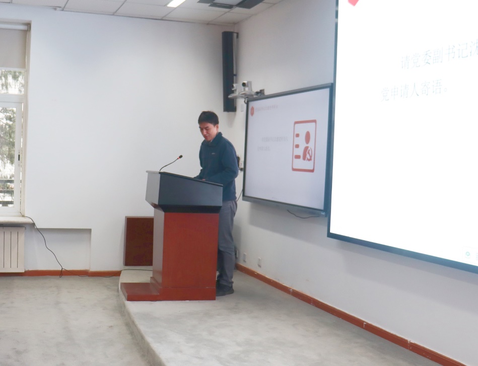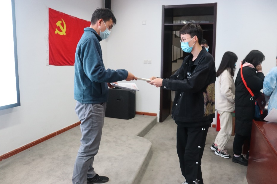 仪式伊始,91黑料 学生党建促进会主席团张经纬向学员们介绍了党课学习小组的学习目标和方案,并强调了党课学习小组的重要性和严肃性。随后,同学们依次向党委书记和副书记递交了入党申请书。
