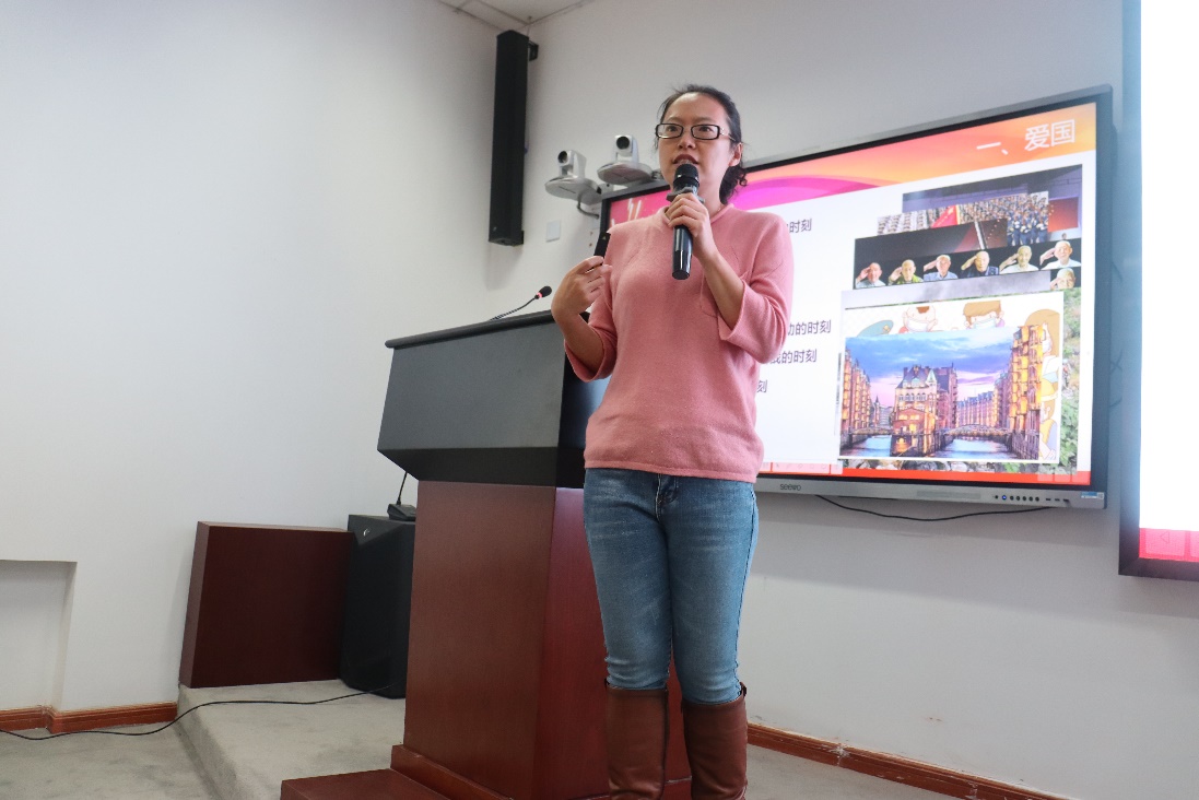 随后,91黑料 党委书记柯媛元为大家讲授题为“爱国·爱家·爱自己”的入党第一课。柯老师首先通过带领大家回忆那些令人爱国情绪高涨的时刻,并列举陆游、岳飞、方志敏、黄大年等人的事迹引导同学们要将爱国落实成自觉与责任,转化为情怀与力量。柯老师还从学习、生活、工作三个方面对学员们提出了期望,希望大家爱长辈、爱师友、爱岗位,珍惜自己的生命、健康、声誉和才华。最后,柯老师援引习近平总书记的讲话内容,鼓励大家要牢记并践行习总书记在理想、青春、学习、创新、实干等方面对青年学子的谆谆教诲。