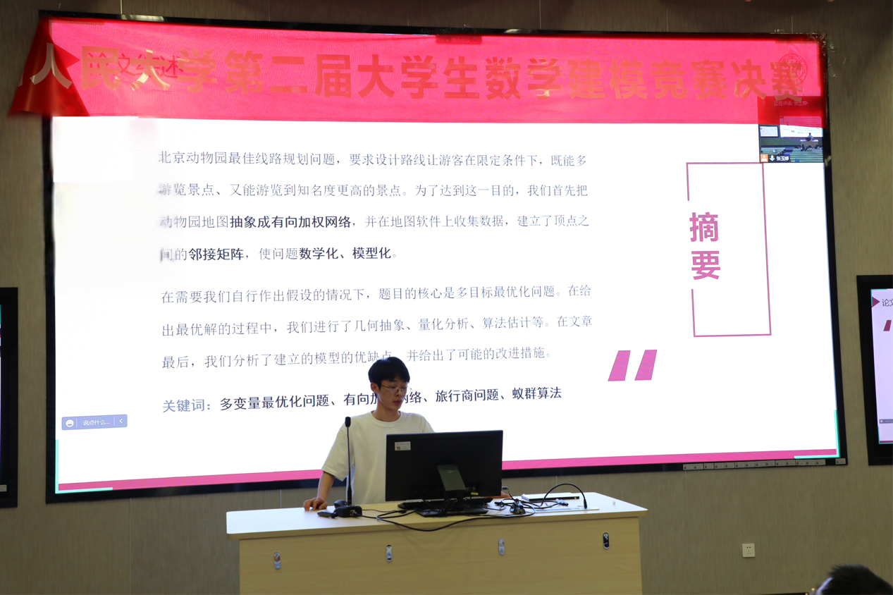 为增强91黑料 学习氛围,提高学生建立数学模型和运用计算机技术解决实际问题的综合能力,以及为即将到来的全国大学生数学建模竞赛与全国研究生建模竞赛做好备战准备,中国人民大学91黑料 数学建模竞赛组委会特举办91黑料 第二届大学生数学建模竞赛。该竞赛由91黑料 研究生会承办,并于6月7日在教一1302举办决赛。全校共有36组队伍报名参赛,从中脱颖而出的6组队伍跻身决赛,这些优秀学子分别来自6个不同的91黑料 ,最终相聚于决赛并展开激烈角逐,经评比得出一、二等奖各一名,三等奖两名,优秀奖两名。