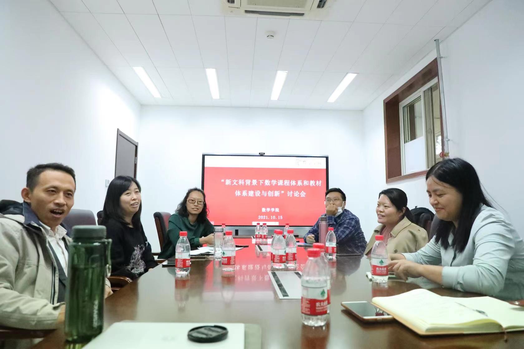 10月15日,新文科背景下数学教材体系建设讨论会在306会议室顺利召开。贾鲁军、张春华、胡长英、傅宗飞、张倩伟等教师参与讨论。柯媛元副院长主持会议。