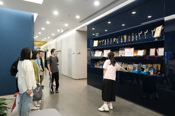 在讲解员的带领下,同学们对途游公司的文化墙、办公区、面试区、休闲区等进行参观,更加近距离地感受到企业运作实际情况和文化氛围。参观结束后,双方进行座谈交流。