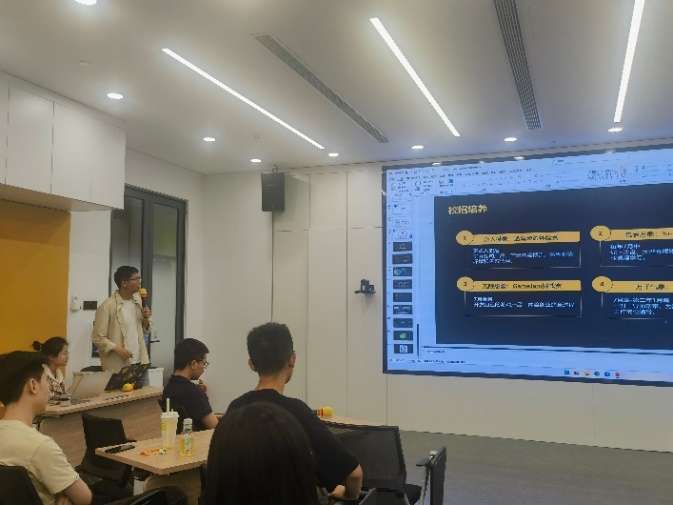 途游游戏公司校企合作高级经理吴凡介绍了目前公司人才招聘需求及员工培养发展体系,并结合不同专业特点,就不同岗位的实践工作内容进行介绍。分享结束后,同学们纷纷针对自己感兴趣的问题向三位代表提问,与途游老师们积极互动交流。