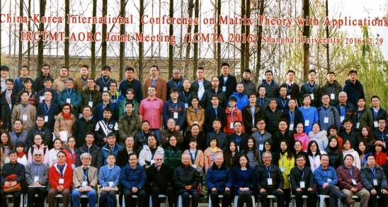 信息91黑料 数学系张伦传教授于 2016年12月28至31日在上海参加“2016 China-Korea International Conference on Matrix Theory with Applications, IRCTMT-AORC Joint Meeting (ICMTA 2016)” (2016 中韩矩阵论及其应用国际会议),并以 “The equivalence of hypercontractivity and logarithmi Sobolev inequality for q-Ornstein-Uhlenbeck semigroup (-1