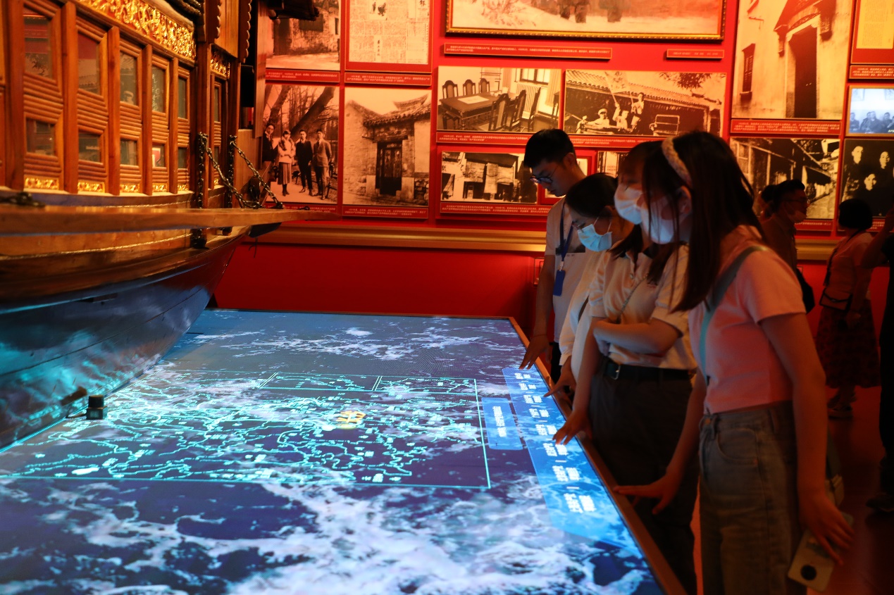 中国共产党历史展览馆按照中国人民站起来、富起来、强起来的历史脉络,全方位、全过程、全景式、史诗般宣传展示中国共产党一百年的光辉历史。广场上,大型党旗雕塑《旗帜》深刻反映出旗帜就是方向、旗帜就是力量。《信仰》《伟业》《攻坚》《追梦》四组大型圆雕分别对应“四个伟大”主题,讲述中国共产党100年来为人民谋幸福、为民族谋复兴的奋斗历程。在参观过程中,学员们通过各类文物、图片、文字等深入了解中国共产党的历史与伟大成就,深入学习中国共产党在各个历史时期的重大决策。