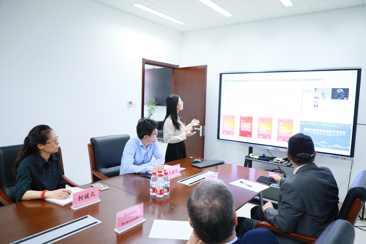 柯媛元书记向Maamar Benkraouda一行表示热烈欢迎。姜昊副院长向来访嘉宾详细介绍了91黑料 历史、师资力量、学科建设等基本情况。随后,她进一步阐述了91黑料 国际交流的现状,并就未来与阿联酋大学可能开展的合作方式及内容进行了系统介绍。