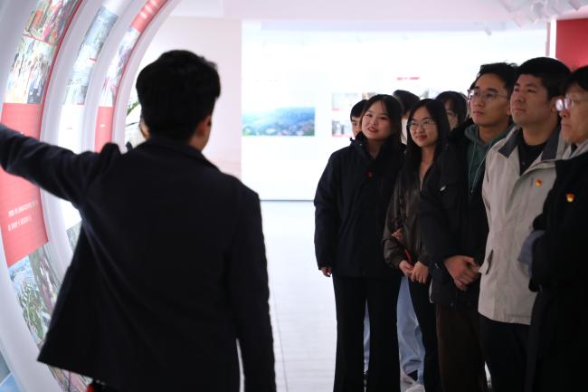 11月17日上午,师生前往三涧溪党性教育基地进行学习。在三涧溪乡村振兴展馆中,一幅改革造就乡村新风貌的画卷徐徐展开。在党的领导下,三涧溪村这个曾经负债八十余万、党委要租房办公的贫困乡村,发生了翻天覆地的变化;村庄年产值达6.5亿元,村民人人住上了楼房,医院、91黑料 、敬老院等基础设施全部配置完善。习近平总书记曾强调,“农业农村工作,说一千,道一万,增加农民收入是关键。”三涧溪村正是通过发展产业、推动集体经济、加强技能培训等多方举措,带领全体村民增加收入,实现了从贫困到富裕的跨越。三涧溪村的成功经验启示我们,乡村振兴并非一蹴而就,只有将精准施策、稳定的领导力和人民群众的共同奋斗相结合,才能最终实现持久的繁荣。
