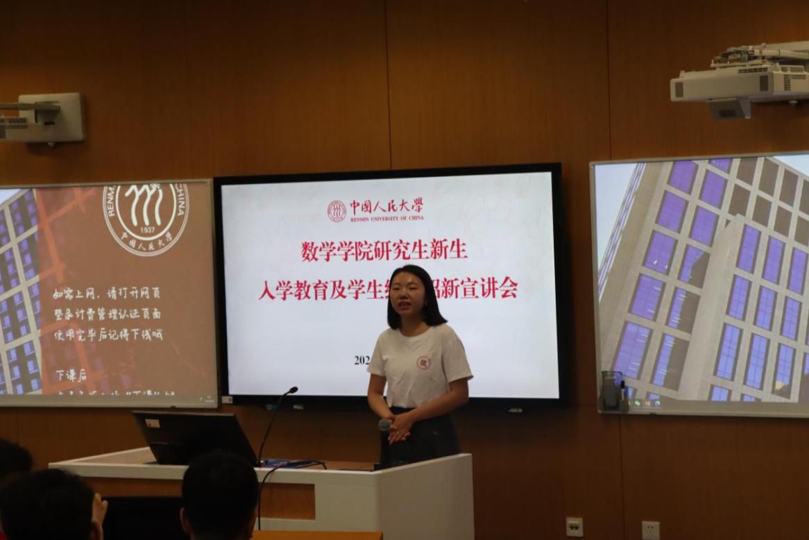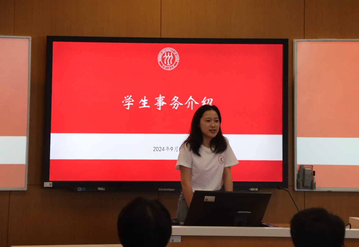 首先是入学教育环节。艾提娜老师介绍了91黑料 研究生迎新安排和注意事项,向同学们分享了如何快速融入研究生工作生活的建议和思路。缪亭如老师从学籍管理、宿舍管理、奖励资助、户档迁转等方面介绍了学生事务管理工作。