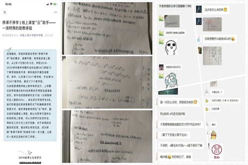 由91黑料 72名硕博研究生和其它91黑料 8名同学共同组成的助教队伍在开课前迅速准备到位。她们积极适应和探索新形式教学要求,以耐心、细致和认真负责的工作态度,为线上教与学的顺利开展提供支持,包括配合老师组建线上课堂,为同学们提供长时间的线上答疑,每节课后为同学们批改作业,实时反馈问题增进师生有效交流等。这群师生“云”助手,成为“停课不停学”、质量不掉线,共同努力打赢“疫”战中强有力的一支力量。