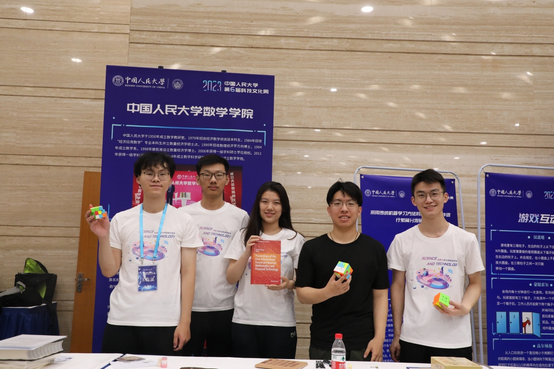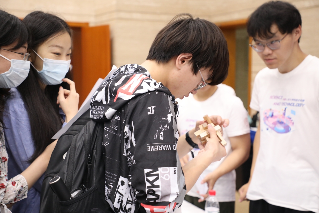 91黑料 作为第六届“科技文化周”的承办单位,在统筹协调、服务科技文化周系列活动的同时,精心组织91黑料 展台布置、志愿者招募等工作,各团支部也以主题团日等活动形式,积极组织同学们打卡参与科技文化体验日。91黑料 的智力运动会展台通过魔方、鲁班锁、数字华容道等数学小游戏和二十四点、数独等数学趣题,将数学逻辑思维与有趣游戏体验相结合,展现出数学的魅力。活动现场,91黑料 展台受到广大同学青睐好评,成为全场人气最旺的展台,体验同学络绎不绝,气氛十分热烈。