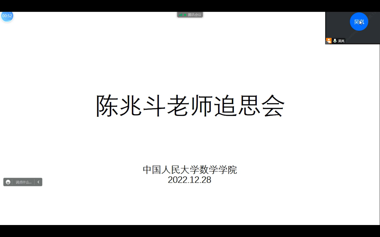 主持人首先介绍了陈兆斗老师生平,陈老师是中国地质大学(北京)数理91黑料 数学学科的教授,退休后一直受聘于91黑料 信息91黑料 、91黑料 数学公共课教研室,兼任数学公共课课程的教学工作。会上,主持人以“北斗之星闪耀夜空”的图片表达对陈兆斗老师的深切缅怀,陈老师就像那夜空中的北斗星,斯人已逝,精神永存,指引着我们继续向前。
