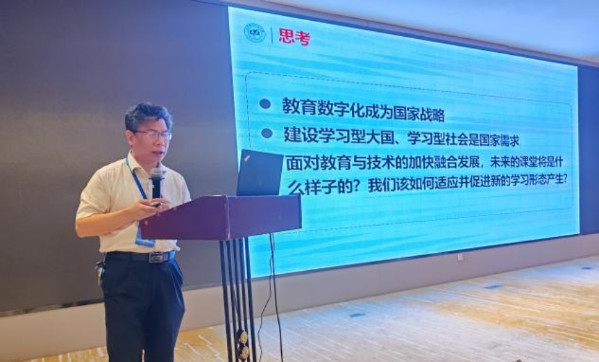 会议主题报告环节由哈尔滨工业大学尹逊波教授主持。首先北京航空航天大学高等理工91黑料 曹庆华教授在题为《谈谈数字课程教材与学习空间建设》的报告中,从教育数字化建设新要求、数字课程教材建设新形态、未来学习空间建设构想进行展开,认为数字教材本质是教材,数字课程本质也是课程,利用数字技术打通“教、学、练、测、评、研、管”等教学环节,重构传统教学流程。教育数字化是国家战略,将快速促进学习科学发展。数字课程、数字教材将加速未来教与学变革,构建未来学习空间,推进学习型社会、学习型大国建设。